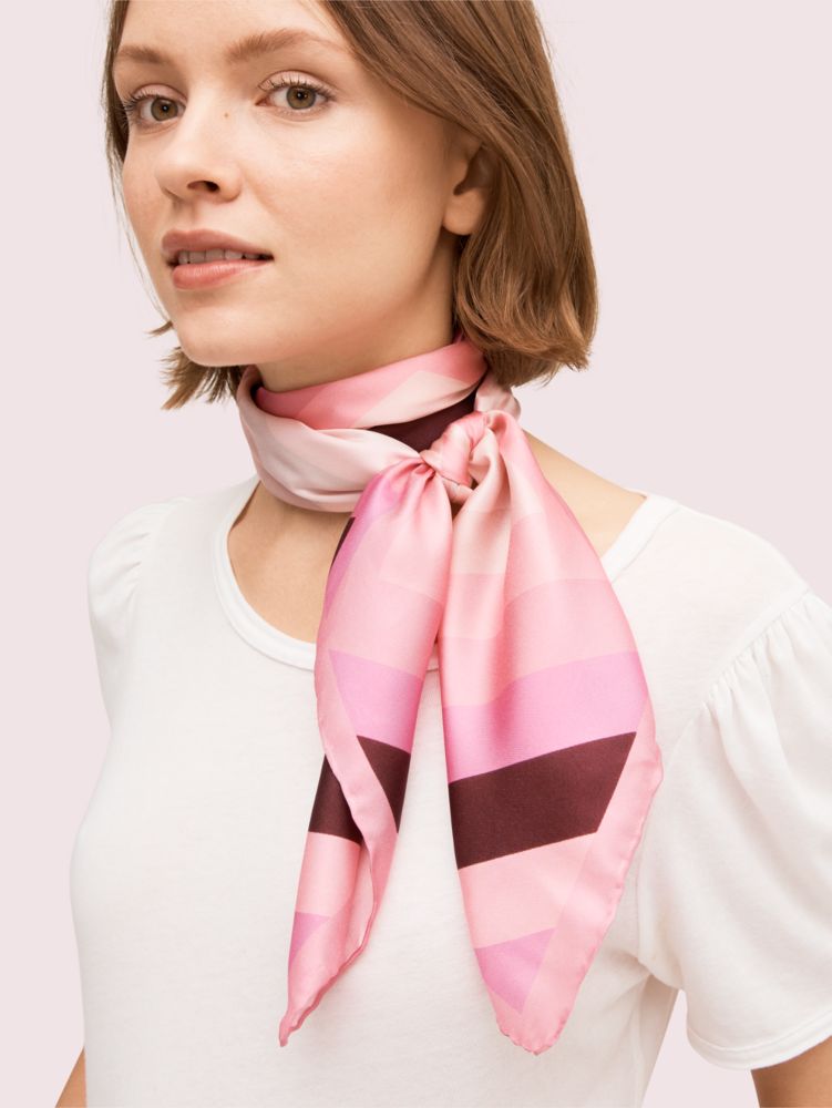 we love how the smooth lambskin leather on our amelia bag is quilted in a concentric formation around our signature mark. so we reimagined it here on this soft silk twill scarf in a colorful quadrant design. tie it around your wrist or the handle of your favorite handbag.