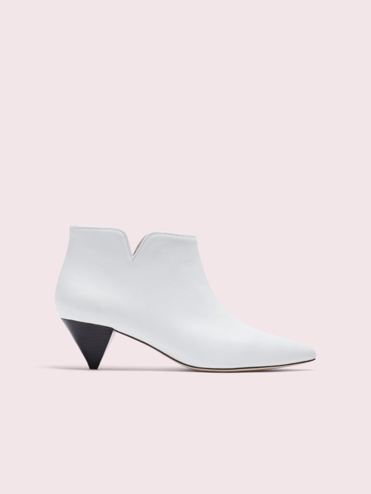 this little ankle boot features details with big impact. the plunging topline and angular heel come together to give this otherwise classic silhouette a sophisticated twist, and its luxe leather will become even more beautiful with age and wear.