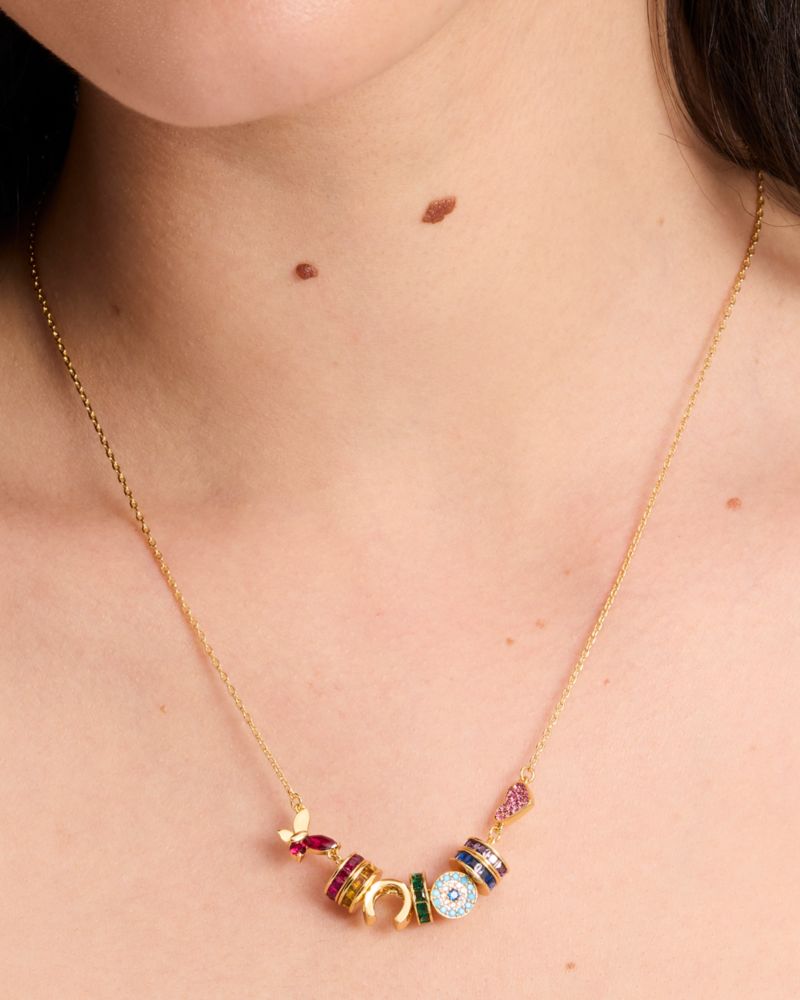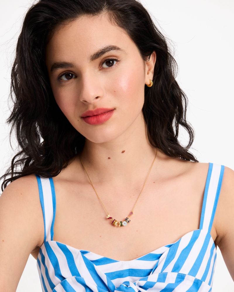 Kate Spade,Rainbow Joy Charm Necklace,Single Strand,Bead Embellishment,Heart Embellishment,Novelty Embellishment,Pave Embe...,