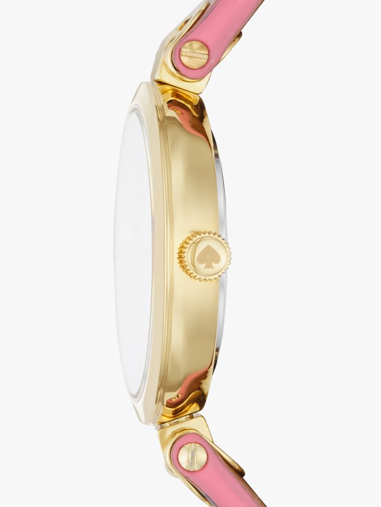 gold-tone stainless steel with leopard-print/luggage reversible strap