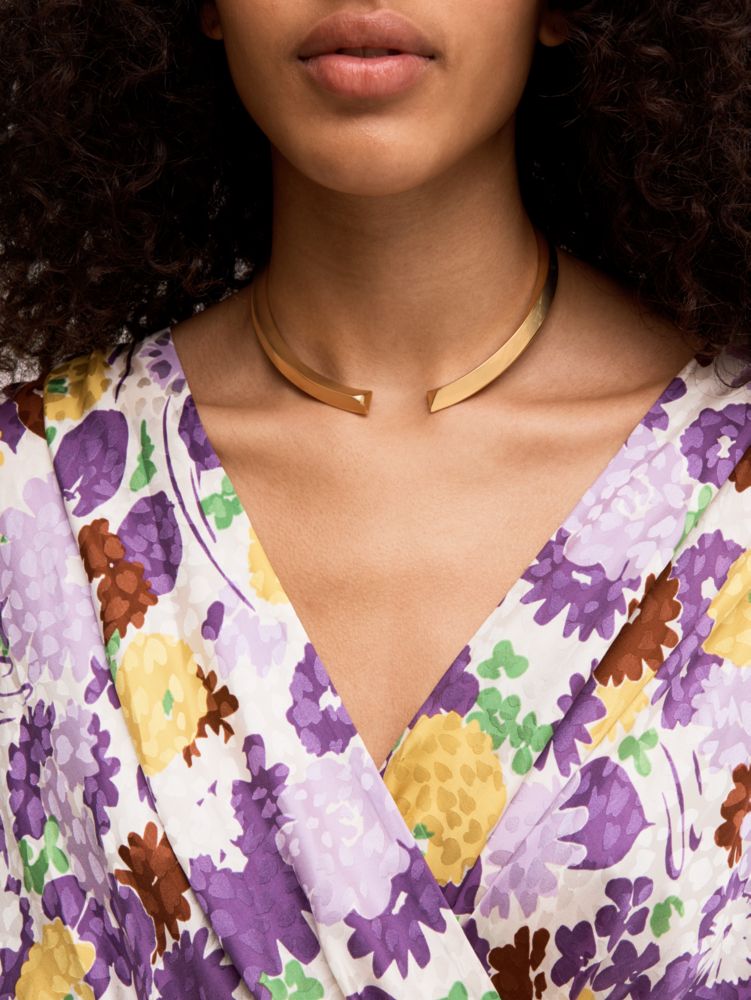 our raise the bar faceted collar necklace will elevate any outfit with its understated elegance. and we designed it using gold ion plating, which means it's extra durable, resistant to wear and high on the shine scale. just use the hinged closure to easily slip it on or off with any look.