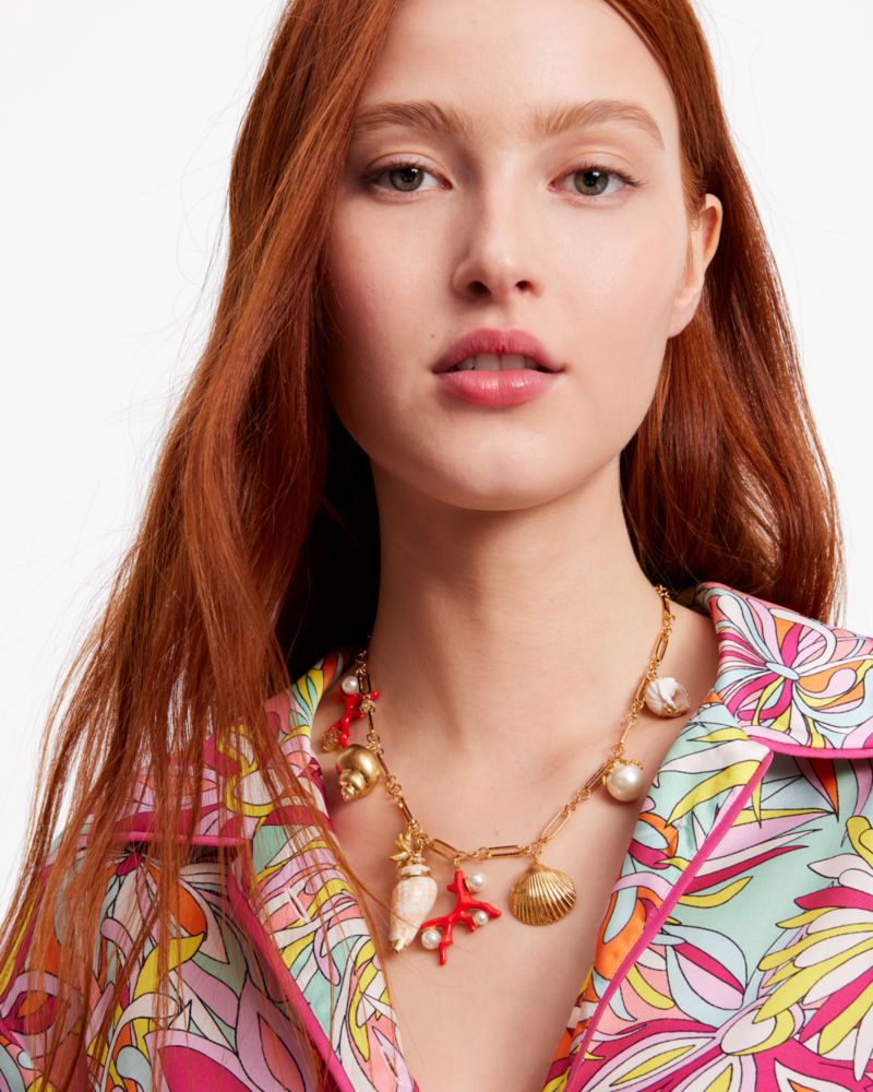 Made from high-shine polished metal with conch shell and enamel accents, our new charm necklace lets you take a sparkling piece of the beach with you.