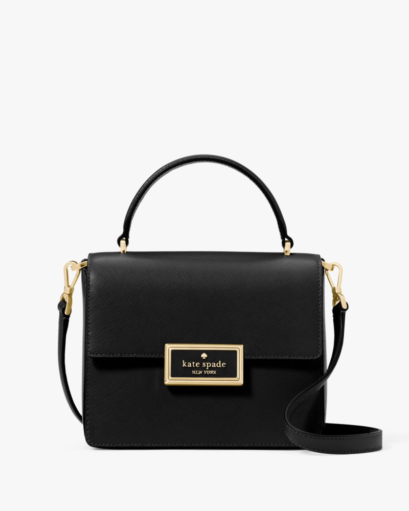 Kate Spade,Reegan Small Top Handle Crossbody,Lining Leather,Crossbody,Logo,Metal,Lined,Day Party,Black