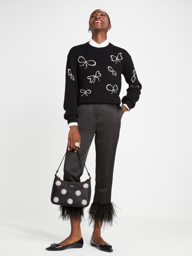 Kate Spade,Rhinestone Bow Toss Sweater,