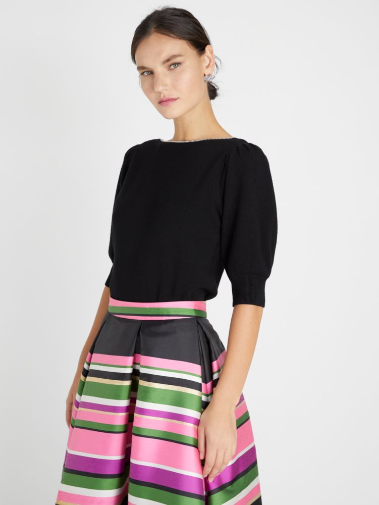 Quel chic! A row of rhinestones line our boat-neck sweater for some subtle sparkle. Bonus: we designed this sweater so it can be worn backwards, too.