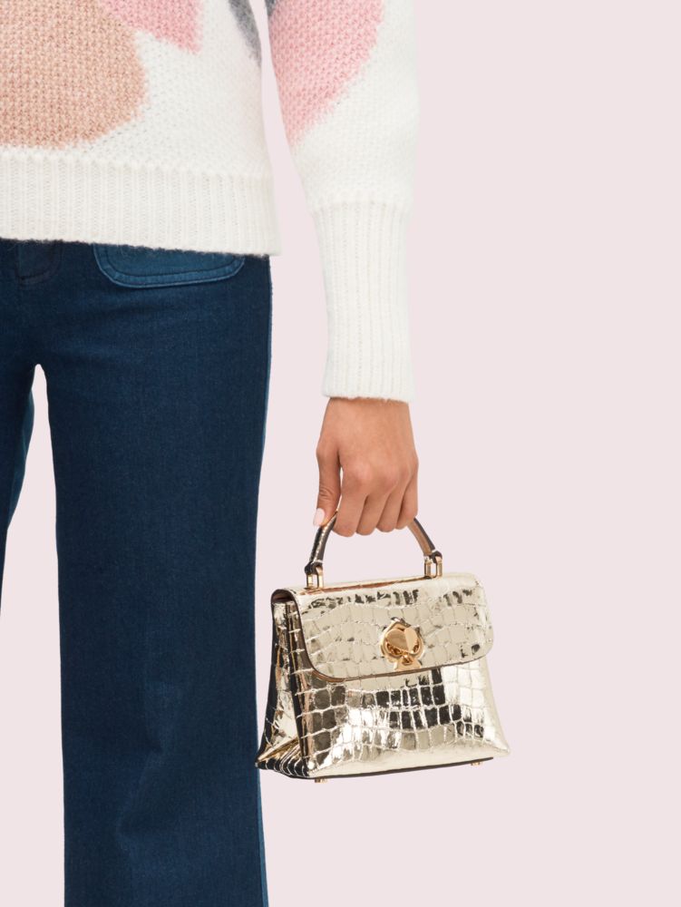Kate Spade,Romy Metallic Croc-embossed Mini Top Handle Bag,