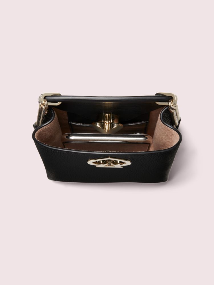 our romy north south crossbody is crafted of both pebbled and smooth italian leather for a playfully sophisticated mix of textures. inside, you'll find a buttery soft faux microsuede lining with a slip pocket and space to fit your phone. the adjustable strap ensures it sits comfortably on your shoulder all day. our spade heart twistlock doubles as clever décor and a very pretty closure.