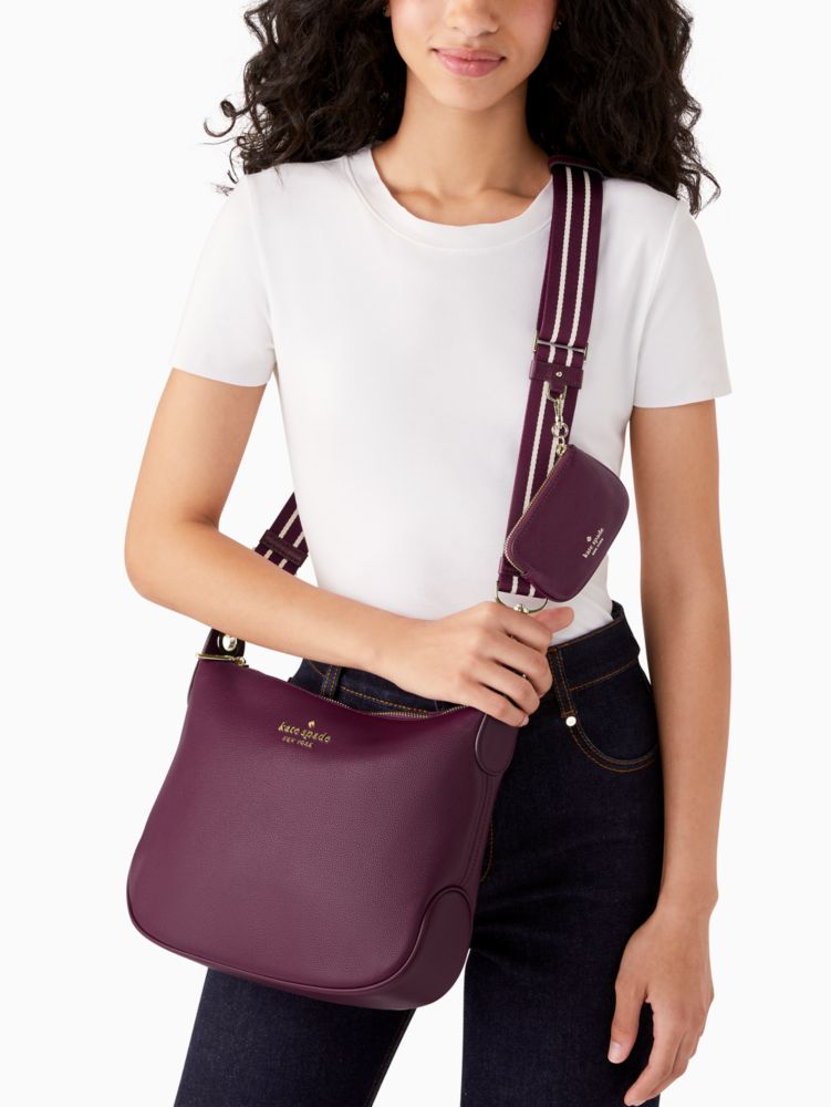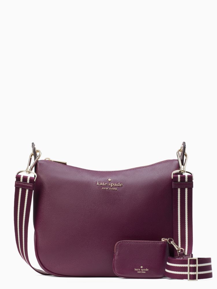 Kate Spade,Rosie Large Crossbody,Leather,Coin,Crossbody,Logo,Word Embellishment,Stripe,Metal,Lined,Casual,
