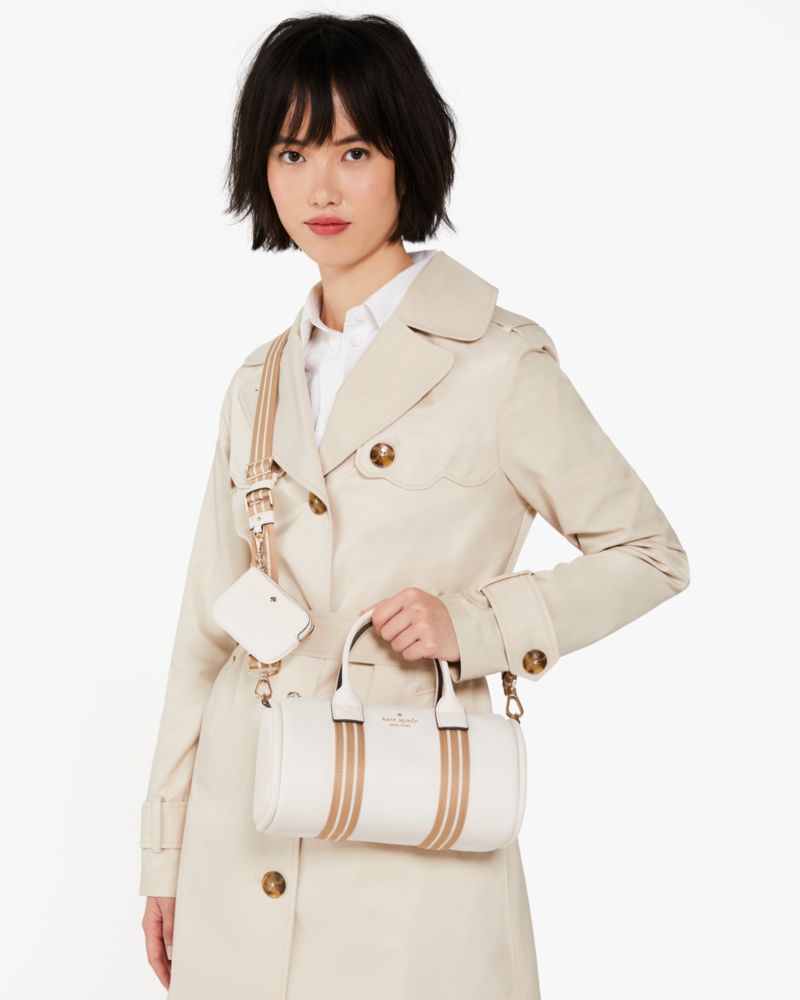 Kate Spade,Rosie Small Duffle Crossbody,Lining Leather,Leather,Barrel Bag,Coin,Metal,Stripe,Logo,Word Embellishment,Lined,...,White,Cream