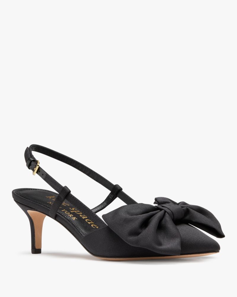 Kate Spade,Rue Slingback Pumps,Pumps,Cut Out,Bow,Elastic Gore,Cocktail,Black