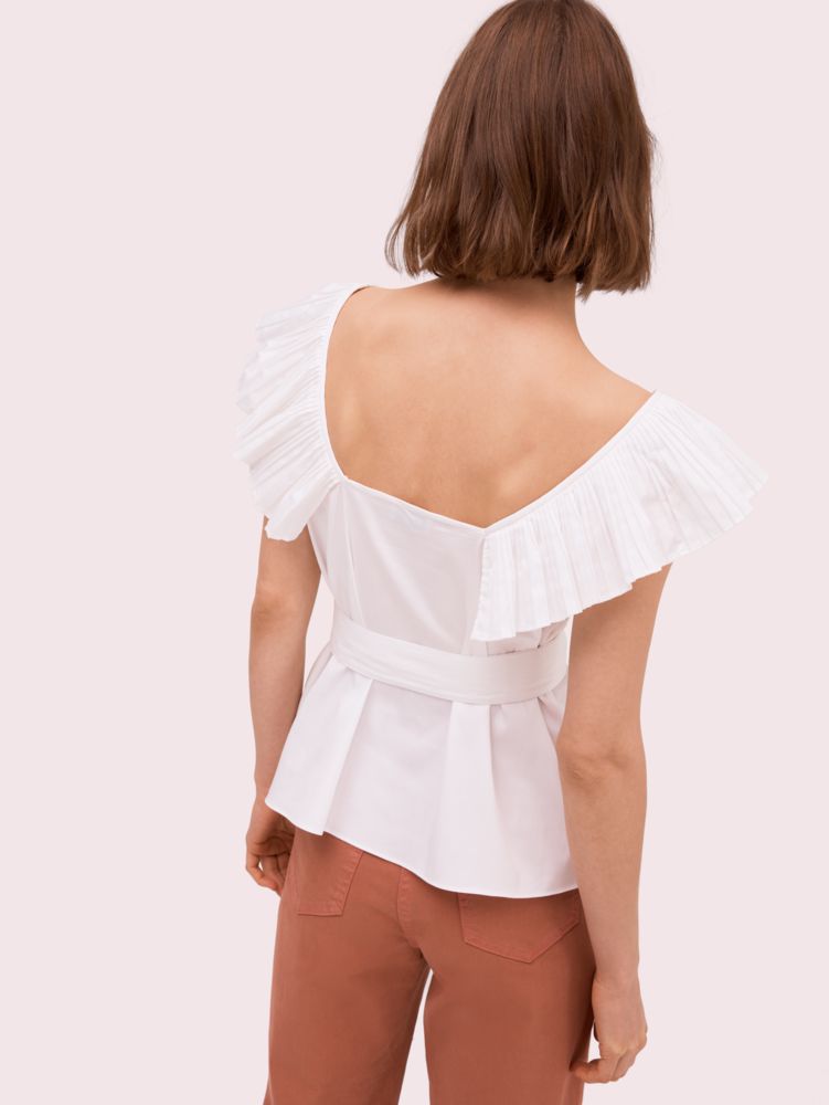 this is that easy, feminine top you'll want to wear whether you're at work or weekend brunch. the optional self-tie belt cinches the waist in a way that's both flattering and comfortable, the ruffled trim adds a playful touch and the soft cotton-blend poplin will keep you cool on extra-hot days.