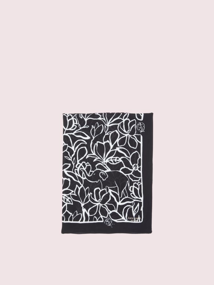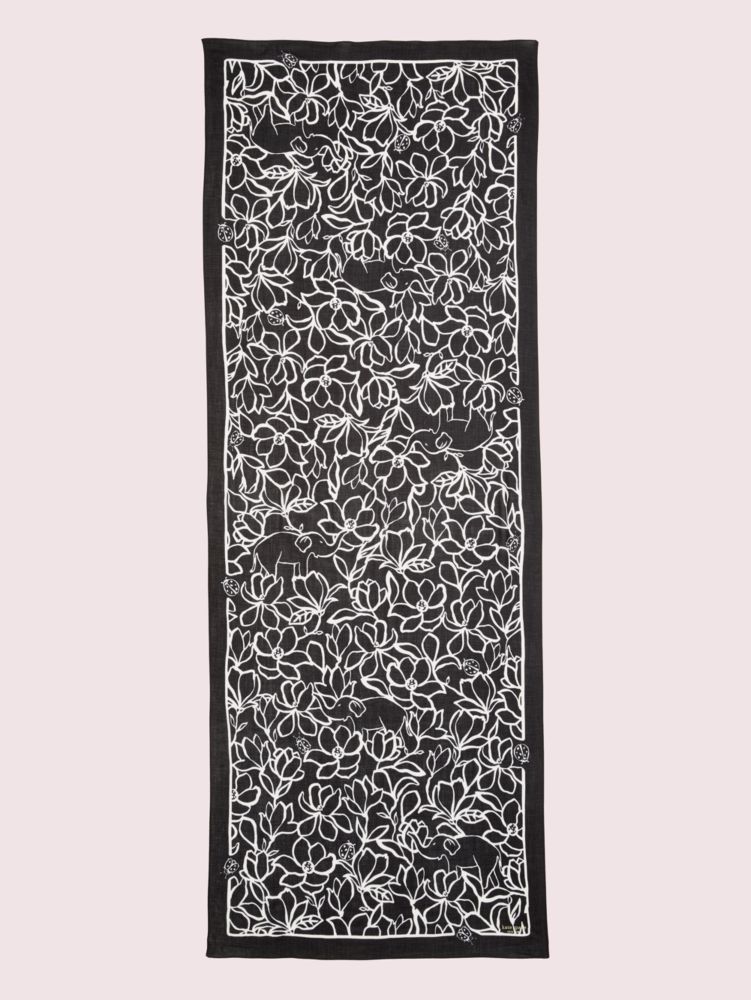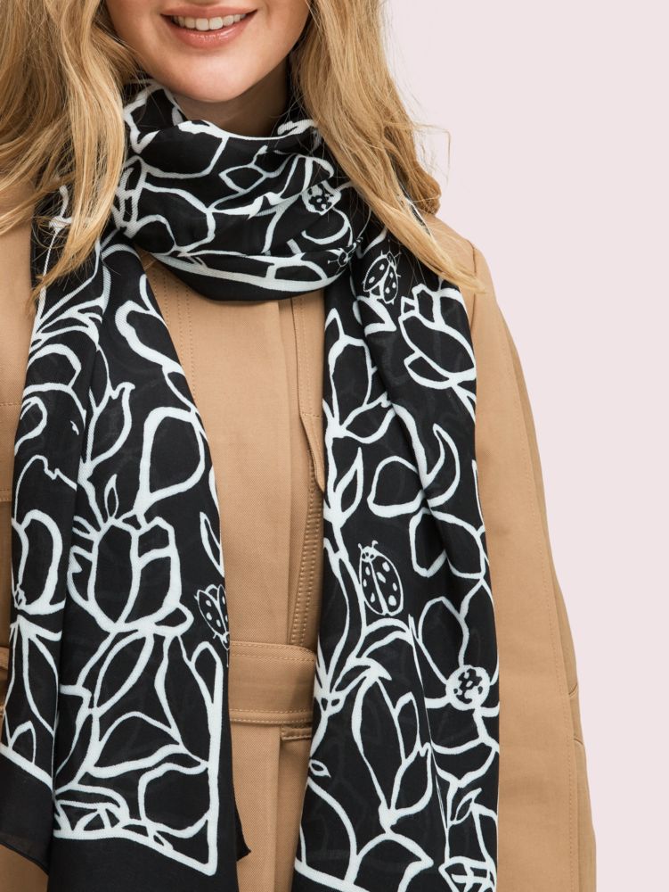 there’s a creative bone in all of us. bring out your inner artist with our scribble flora scarf, made of black soft twill and printed with white outlined flowers that look just like the doodles in your desk journal. this oblong style is perfected with baby hem sides and our signature gold foil logo.