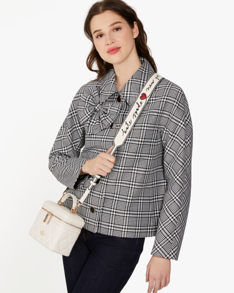 Kate Spade,Script Logo Leather Bag Strap,Leather,Bag Straps,Stitching,Cream