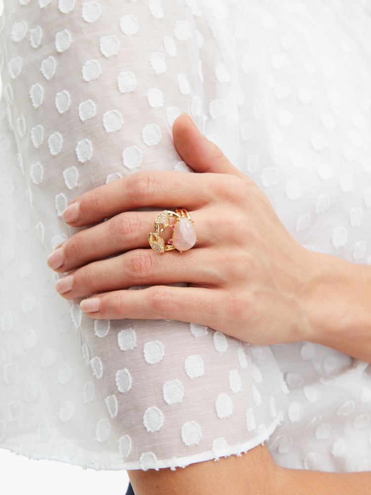 - plated metal, cubic zirconia, semi-precious rose quartz