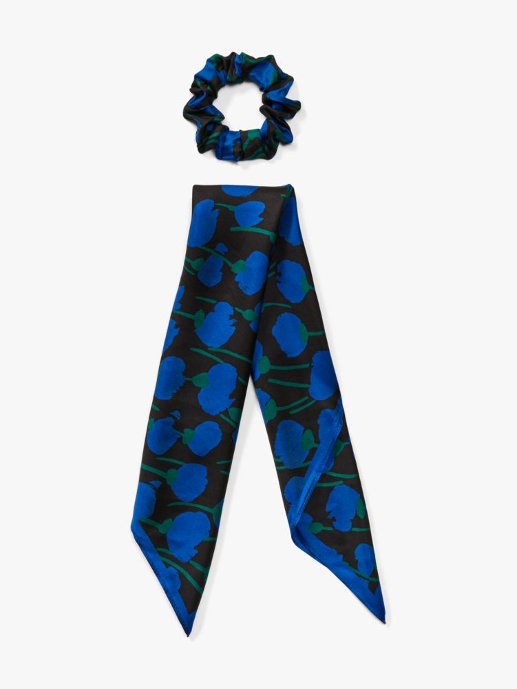 a very practical (and playful) two-in-one. this silk hair tie set is designed with an elasticized scrunchy for a gentle but secure hold on your hair. or, if you prefer, you can just wear the bandana.