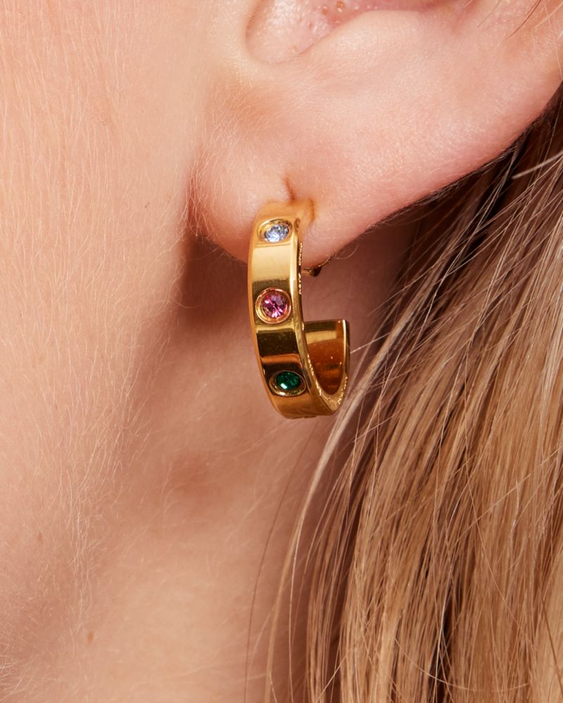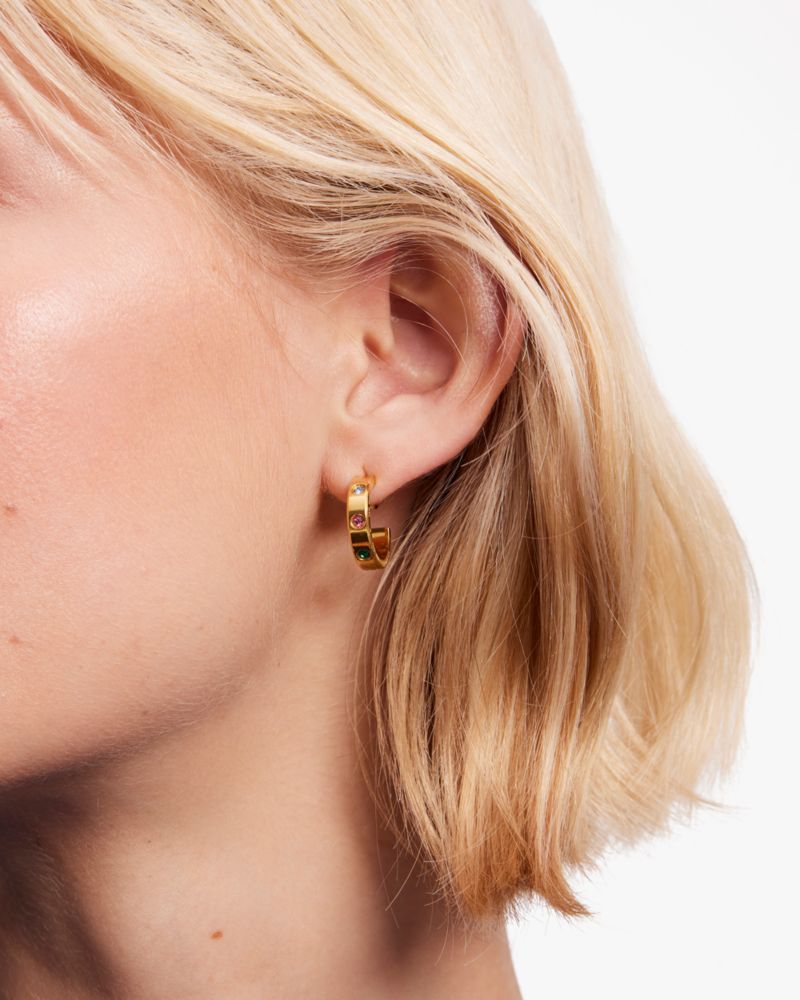 Kate Spade,Set In Stone Huggies,Hoops,Glass,Gem Embellishment,Stainless Steel,Day Party,Multi Color