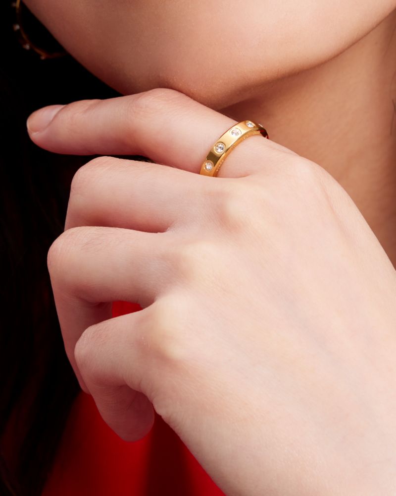 Kate Spade,Set In Stone Ring,Single Band,Crystal,Cubic Zirconia,Gem Embellishment,Stainless Steel,Casual,Work,Clear