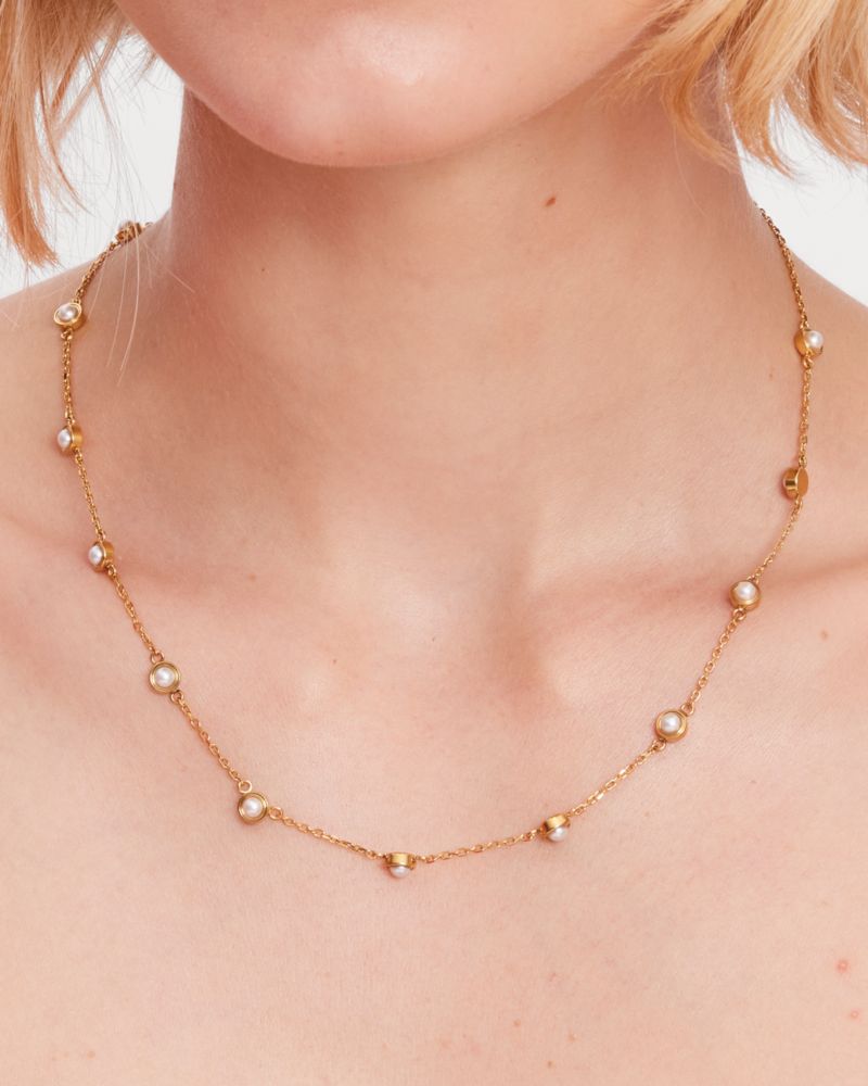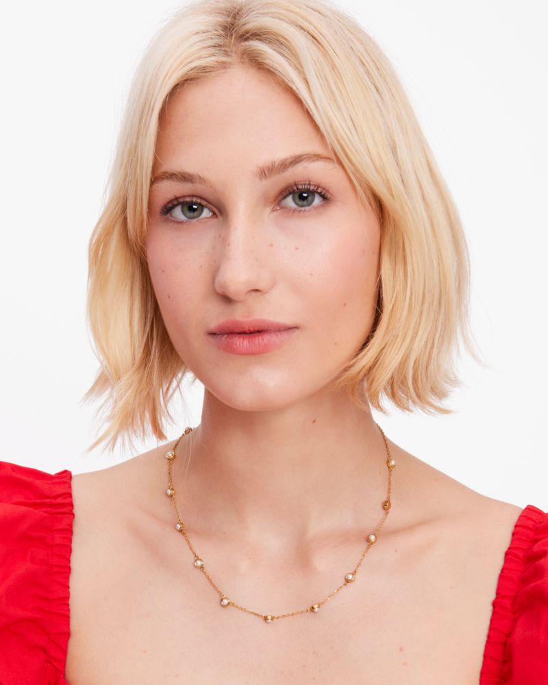 Kate Spade,Set In Stone Station Necklace,Single Strand,Stones,Chain Link,White Gold Plated,Stainless Steel,Casual,White
