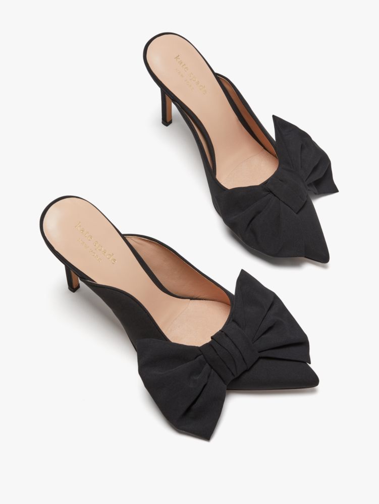 your choice of shoes says it all. when you slip on our sheela pumps, made from soft black fabric in a glamorous, slip-on style and topped with a big bow, they'll all be wondering: who's that girl?