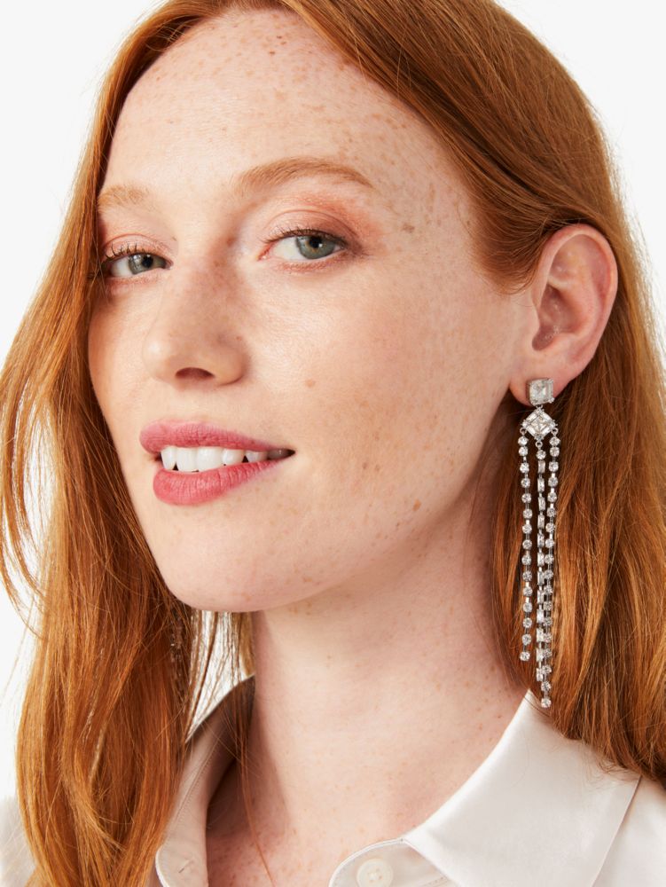 who is she? prepare to dazzle in these shimmering fringe earrings: they'll swish and sway as you strut your stuff.