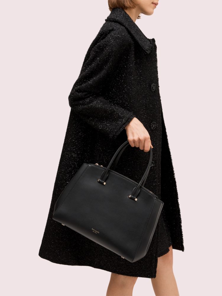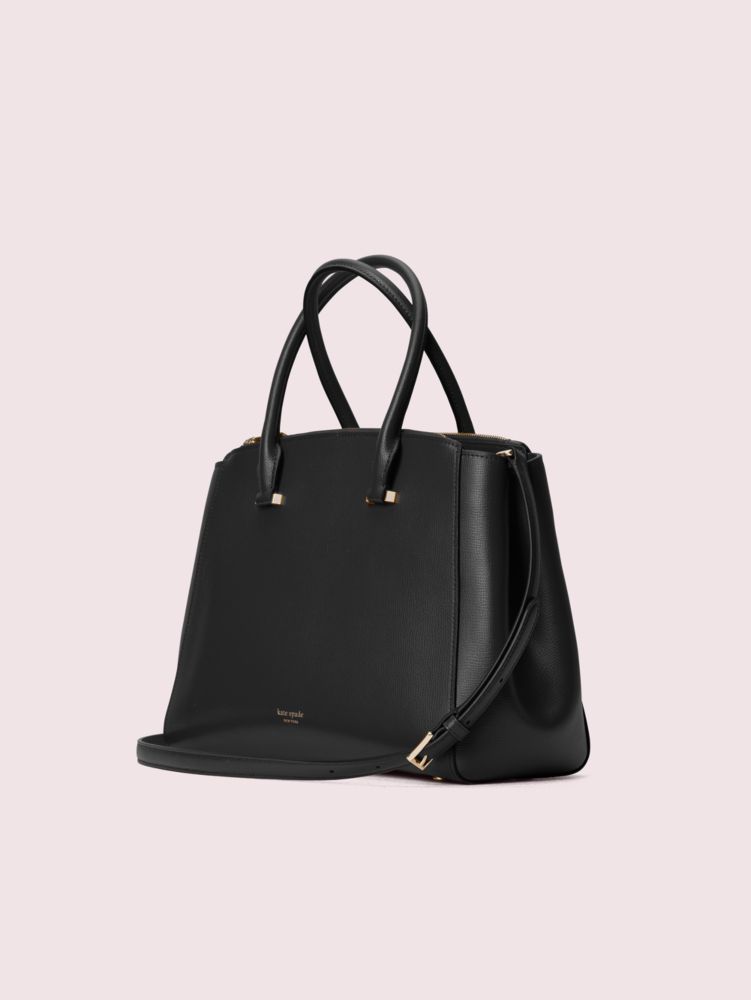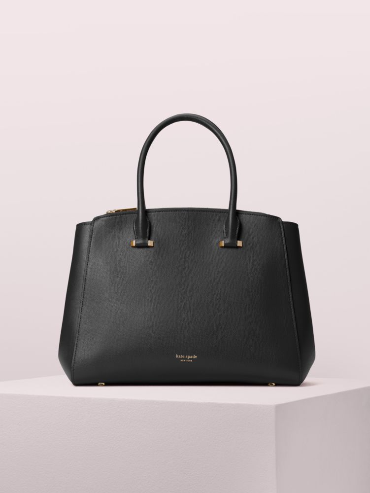 our shirley large double-zip satchel boasts a classic, spacious silhouette done in pebbled leather that gets better over time and our luxe spade floral jacquard lining. inside, you'll find two zipper compartments and a large central one with a snap-tab slip pocket that can hold two phones. (or anything you choose to slide in, really.) an optional, adjustable shoulder strap gives you the option to comfortably sling it across your body when you need free hands for your latte.