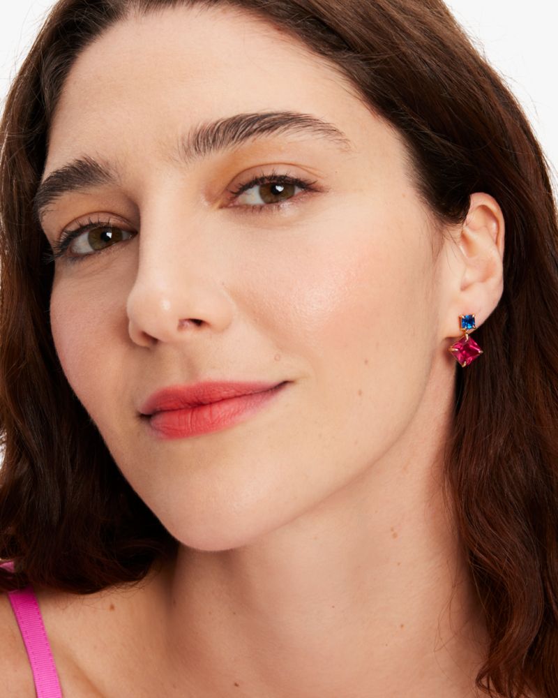 It's showtime! Get ready to turn heads with our new statement-making earrings featuring colorful crystal drops.