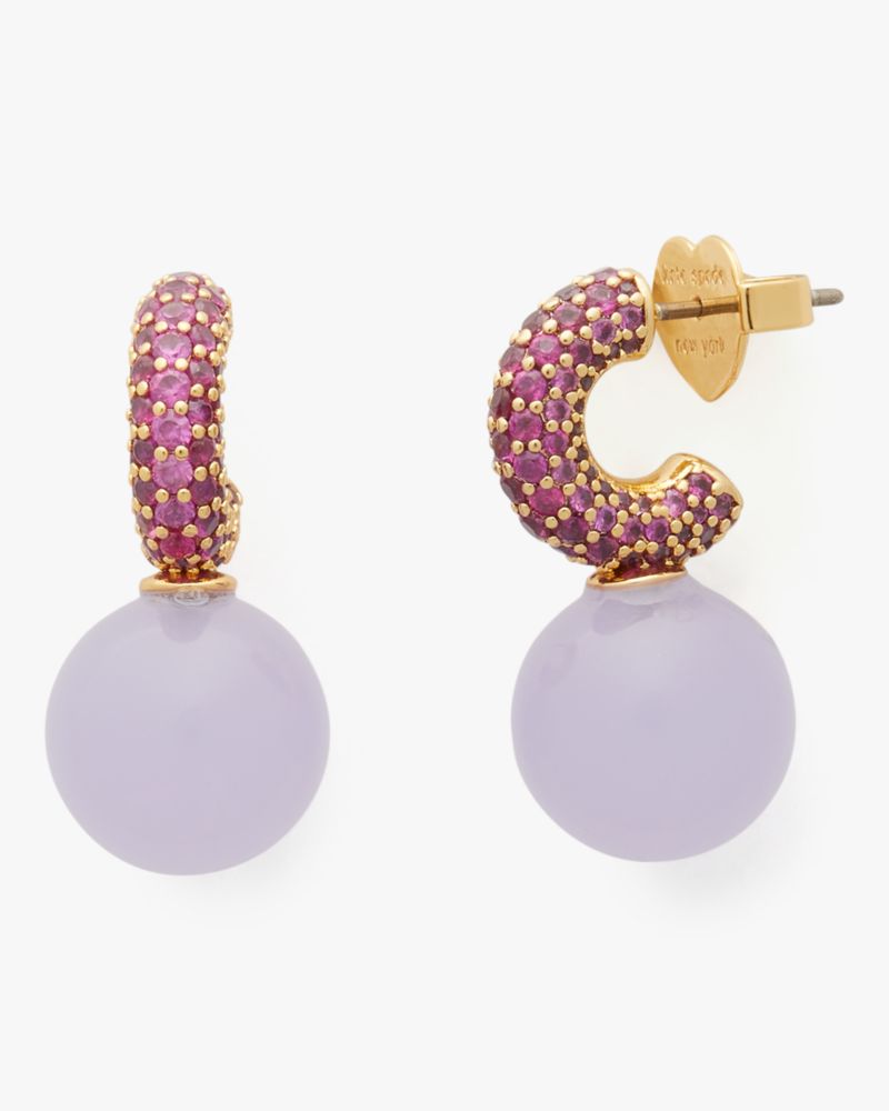 It's showtime! Get ready to turn heads with our new statement-making huggies, showcasing colorful glass drops on pavé crystal hoops.