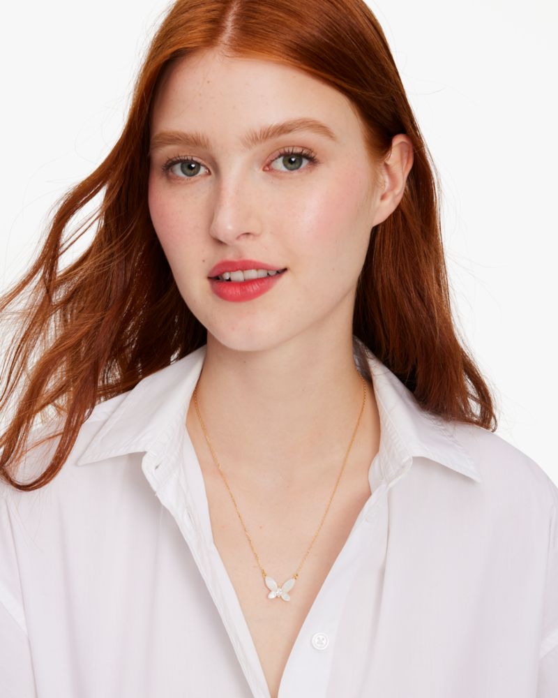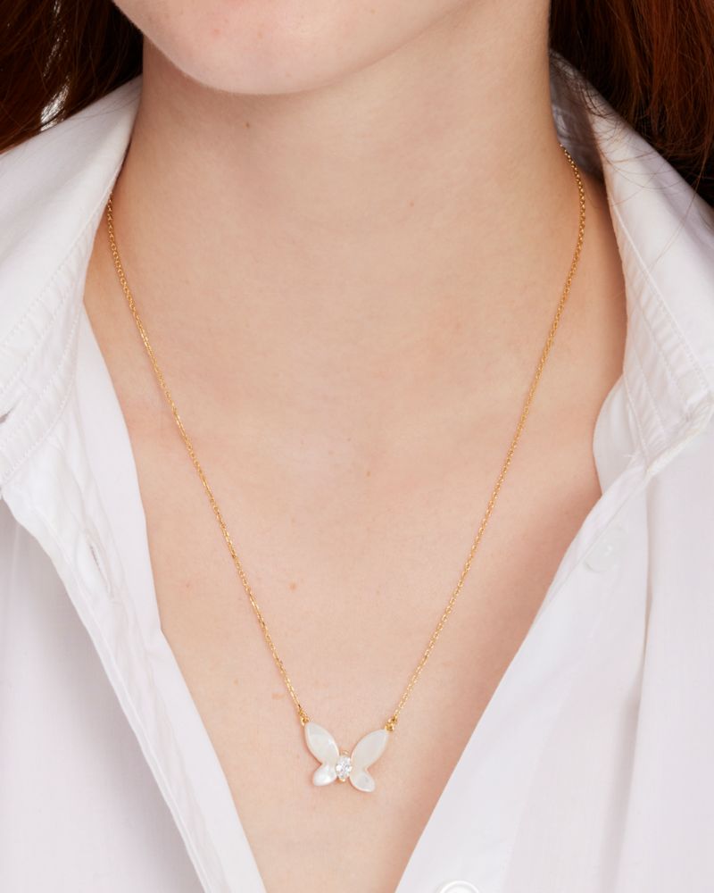 Attend all your events in style with this elegant necklace featuring an enamel butterfly pendant.