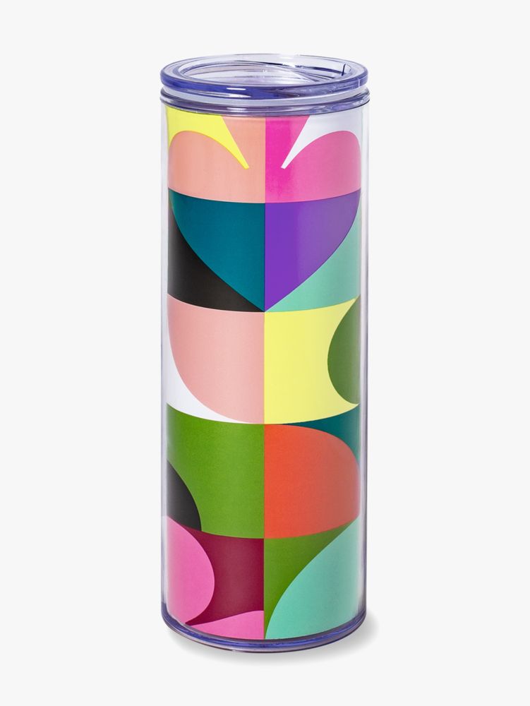 iced coffee or hot coffee? depends on the day? however you start your morning, this thermal mug makes a fashion statement while you sip with its colorful geometric print of spades and shapes.