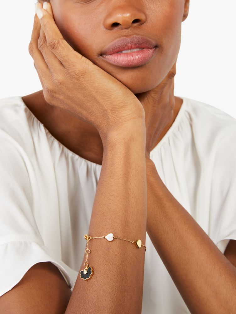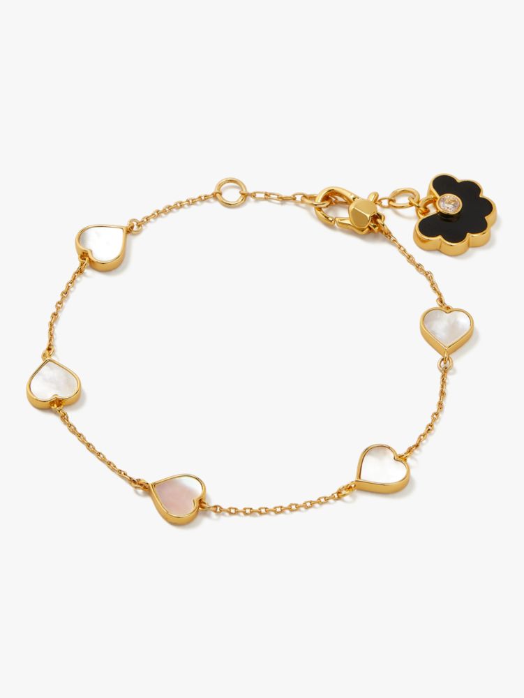 if you know us, then you know we love a good finishing touch...like this glamorous bracelet with an enamel spade flower and scattered mother-of-pearl petals.