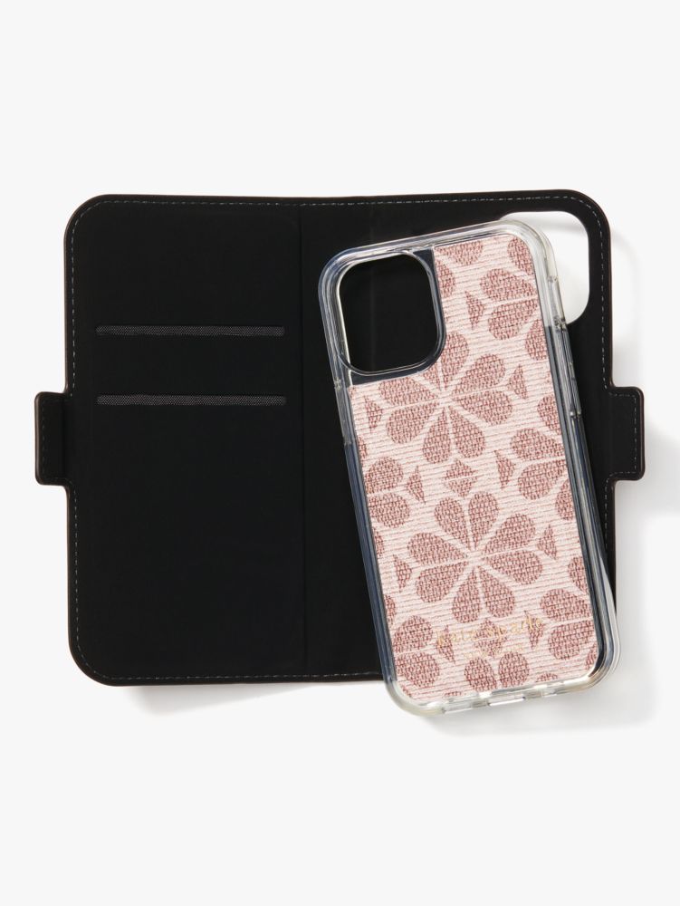 this season we reimagined our spade flower collection in a new coated canvas that wipes clean. to make it, limonta printed the dimensionality of a jacquard with some high tech machinery. our inspiration: jacquard textures of the 1950s we discovered in their archive. here, we’ve used our new spade flower coated canvas on our magnetic wrap folio iphone case.