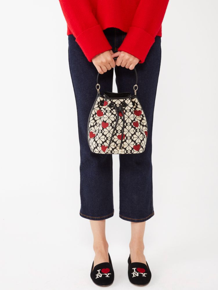 Spade Flower Jacquard Hearts Medium Bucket Bag