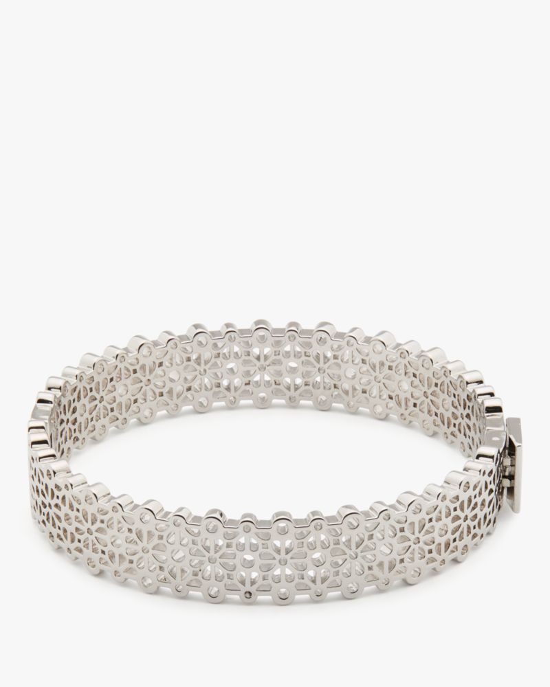 This thin bangle is made from lace-like filigree featuring our Spade Flower motif.