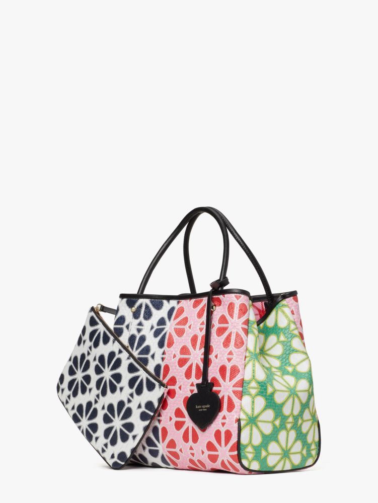 we call this colorful tote everything--because it fits everything you need. (even a 13" laptop.) plus, the durable and easy-to-clean italian raffia-finish jacquard fabric will make this bag your...you guessed it. everything.