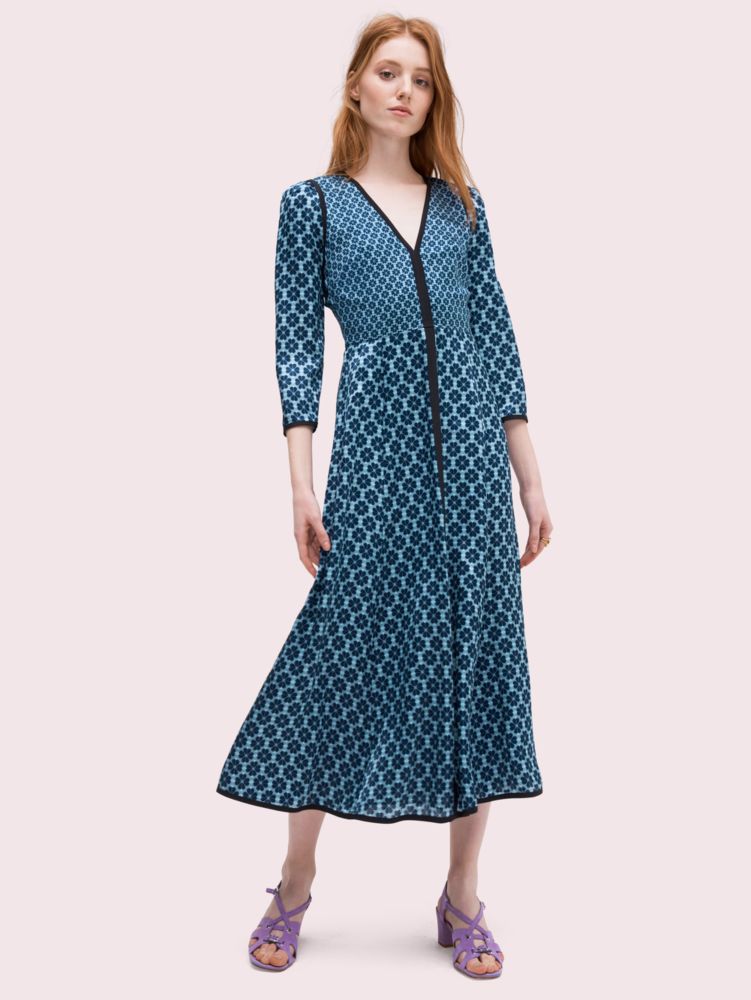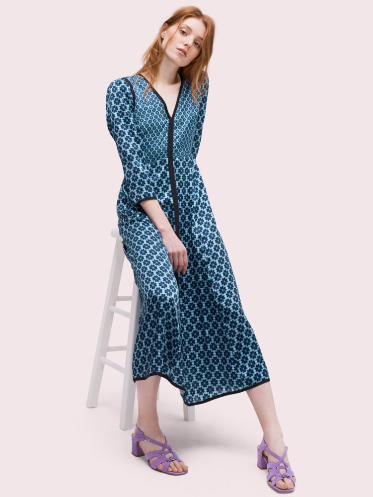 we took our spade flower print and put it on the softest silk charmeuse to create this iconic mini dress. we gave it puff sleeves and a high neck with covered buttons at the shoulder that trail down the entire length of the dress (and appear on the cuff, too). the slighly fitted waist gives you a little shape, but it's looser fit makes it comfortable enough to wear all day and night.