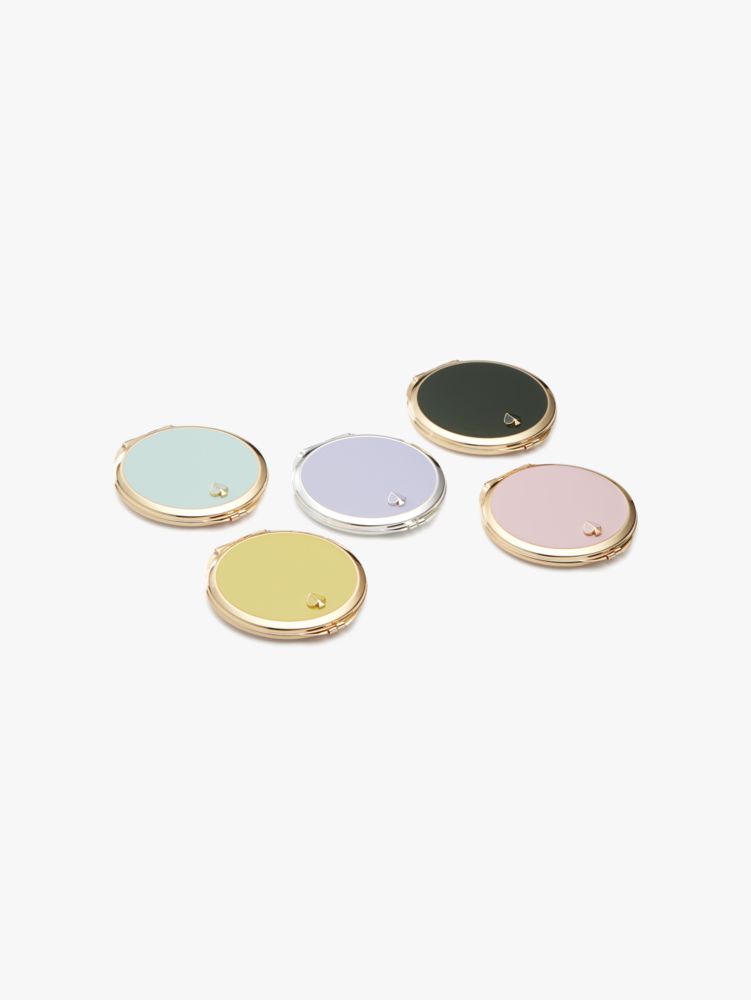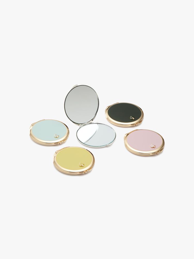 here's a very chic compact from our spade street collection. it's modern, classic and comes in the prettiest colors. we made it from smooth metal so it's durable and feels really nice to hold while touching up your lipstick. but our favorite details are the angular gold-tone edges and faceted spade.