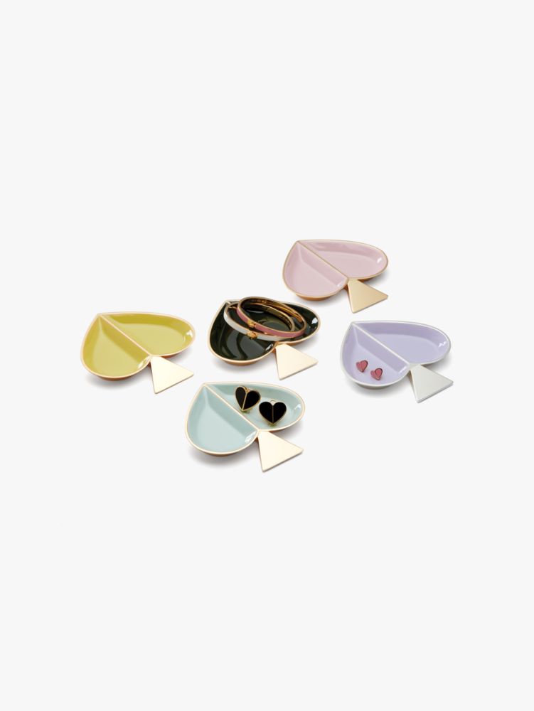 here's a very chic jewelry dish that doubles as decor from our spade street collection. it's modern, classic and comes in the prettiest colors. we made it from smooth metal so it's durable and feels really nice to hold. but our favorite details are the big, sculptural spade and gold-tone edges. just picture it on your nightstand or a chest of drawers.