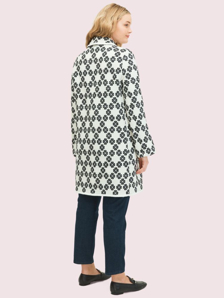 two of our signatures in one: meet our spade tweed. developed at a french mill exclusively for us, this custom cotton-blend jacquard fabric reimagines our recognizable mark in black and cream with cool, subtle dimension. an a-line silhouette and tortoiseshell buttons will make this satin-lined coat a wardrobe classic.