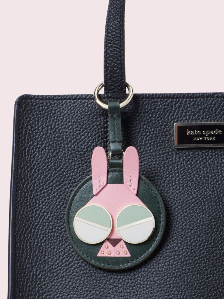 spademals are a group of critter friends that all have features inspired by the curves of the spade. this smooth leather keychain has our money bunny on it. the oversized shape was specifically designed to make finding your keys in your bag easier and the unique design will prevent your roommate from accidentally grabbing your keys instead of theirs.