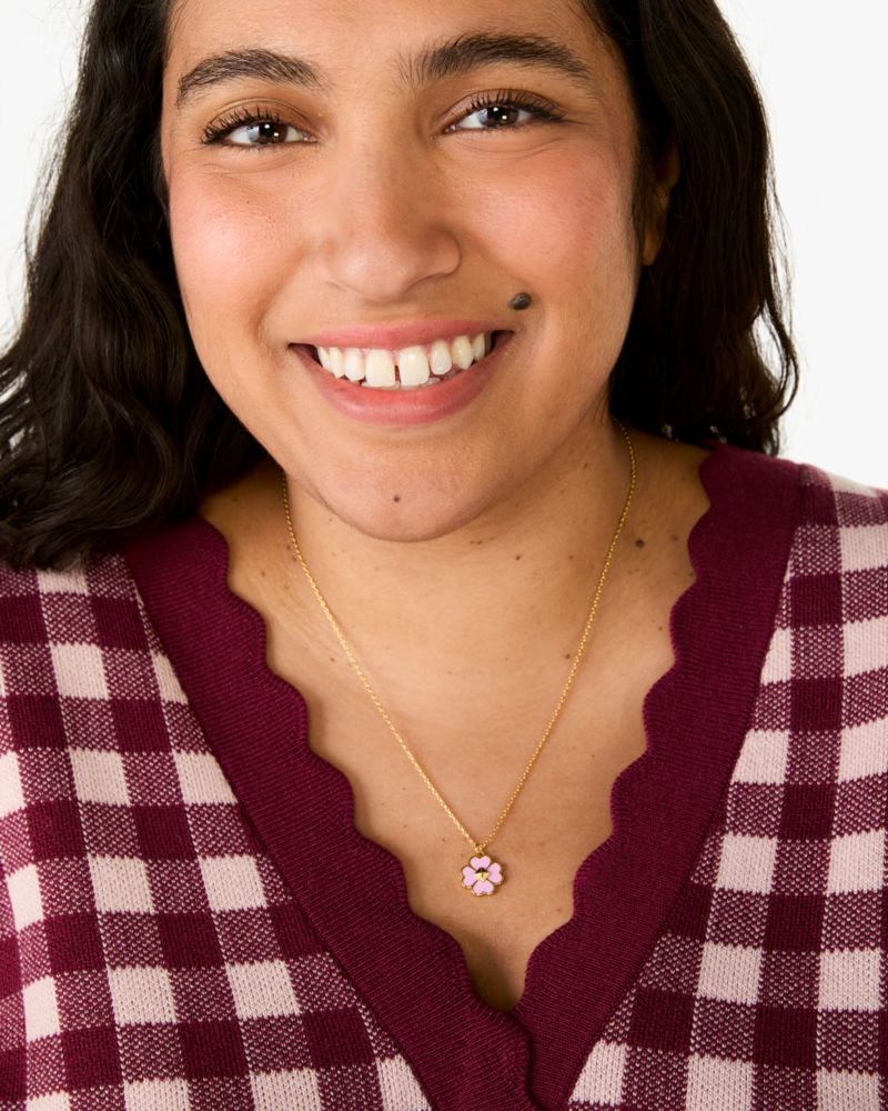 Kate Spade,Spades & Studs Enamel Mini Pendant,Single Strand,Enamel,Logo,Gold Metal,Casual,Pink