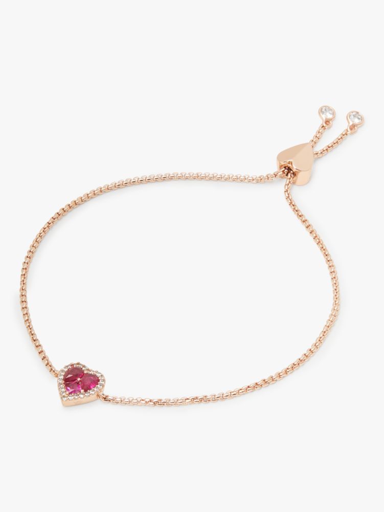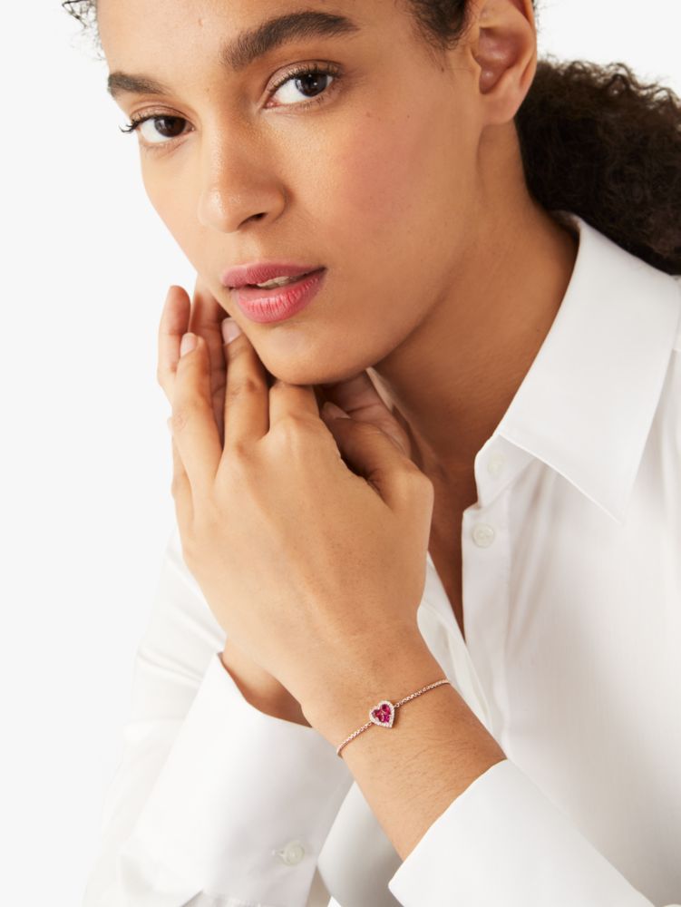 allow us to spell it out for you: you'll l-o-v-e this slider bracelet. it's got a hot pink heart-shaped gem and some serious shine.