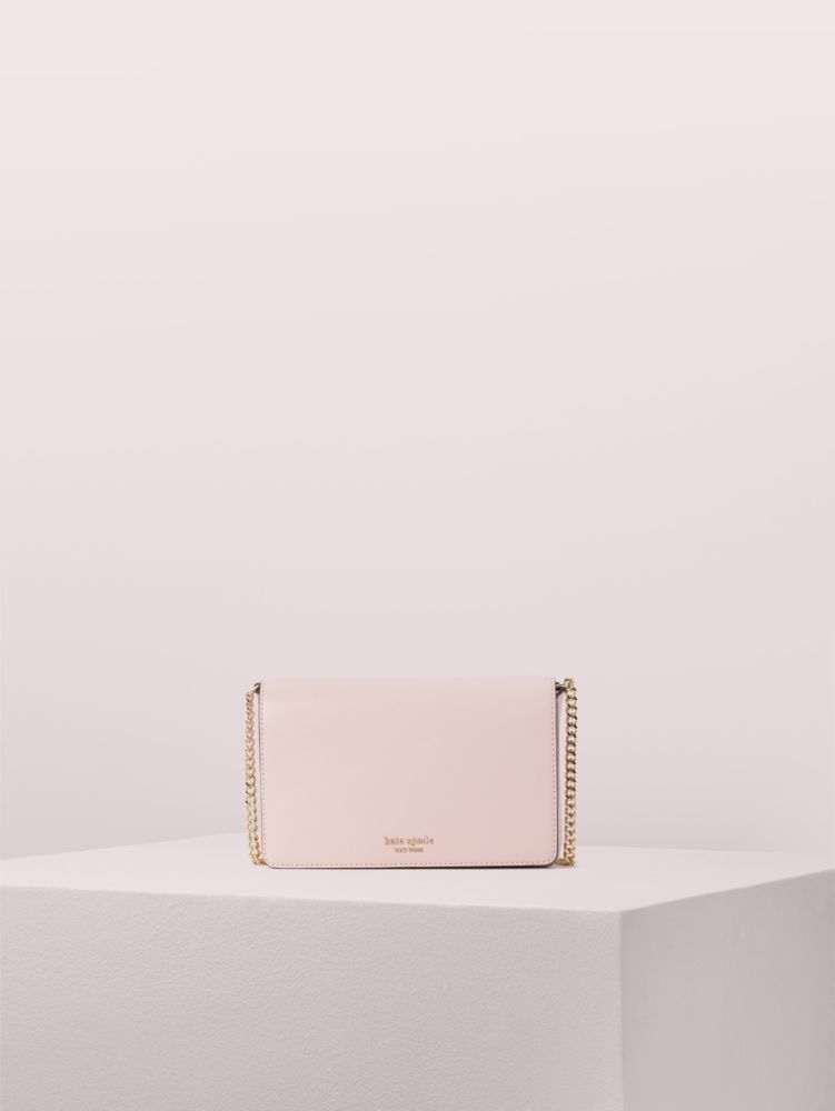 an extra special something for the one who's down to hang. our spencer chain wallet is done in our new saffiano leather. its soft texture is nice to touch and durable against drops and scratches so it'll keep its sleek, luxe look. of course, we made this style as functional as it is beautiful: unsnapping it reveals plenty of pockets (six card slots and a zipper compartment, to be exact) for your current and growing card and receipt collection. plus your phone, keys, lip balm, snacks...and the optional chain strap means you can sling it over your shoulder or slide it into a bigger handbag.