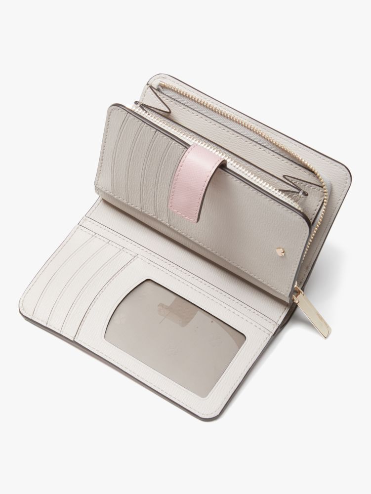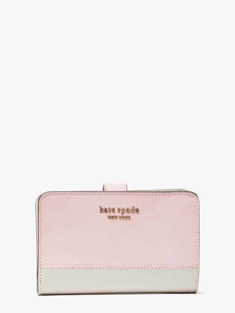 Our Spencer Compact Wallet is done in our new Saffiano leather. Its soft texture is nice to touch and durable against drops and scratches, so it'll keep its sleek, luxe look.