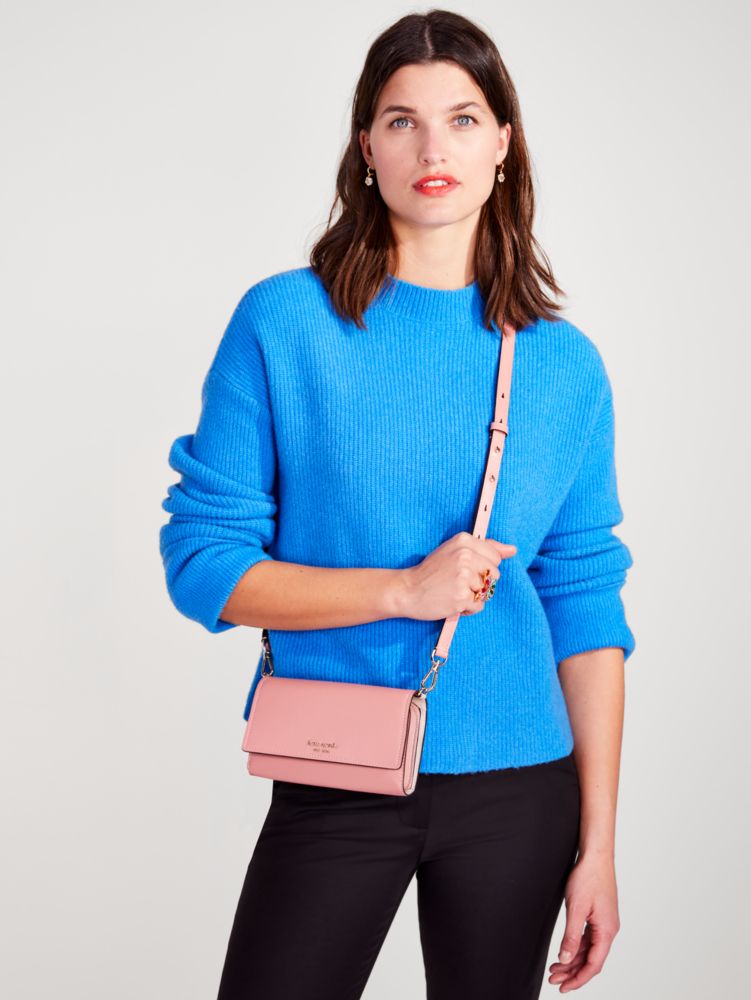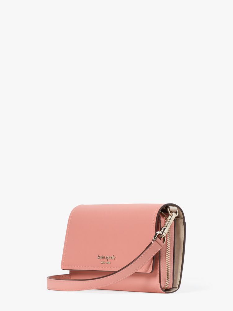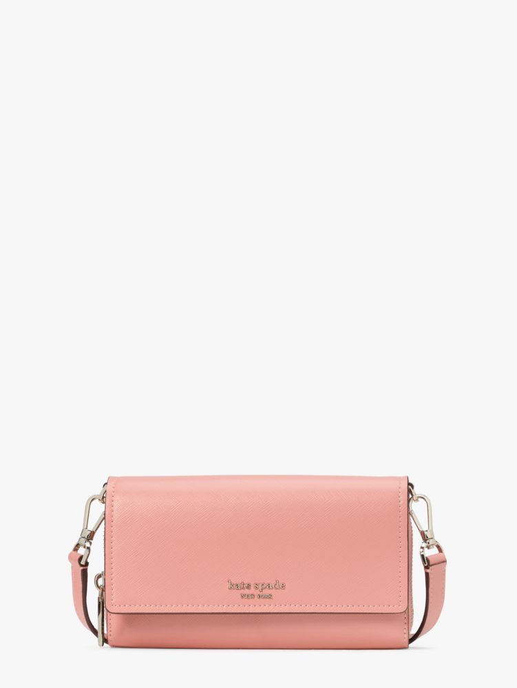 We updated our Spencer East West Phone Crossbody in smooth Saffiano leather. Its soft texture is nice to touch and durable against drops and scratches so it'll keep its sleek, luxe look (as well as your phone's). We gave it plenty of compartments and card slots so it has room for more than just your device. Plus, the optional strap means you can sling it over your shoulder or slide it into a bigger handbag.