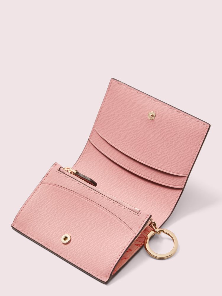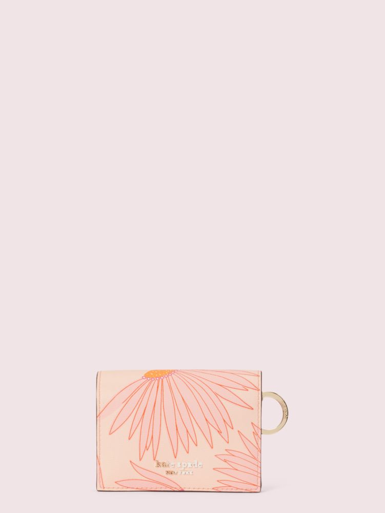our spencer mini key-ring wallet gets a feminine spin in faux leather printed with whimsical falling flowers. we kept it durable against drops and scratches so it'll keep its luxe look.