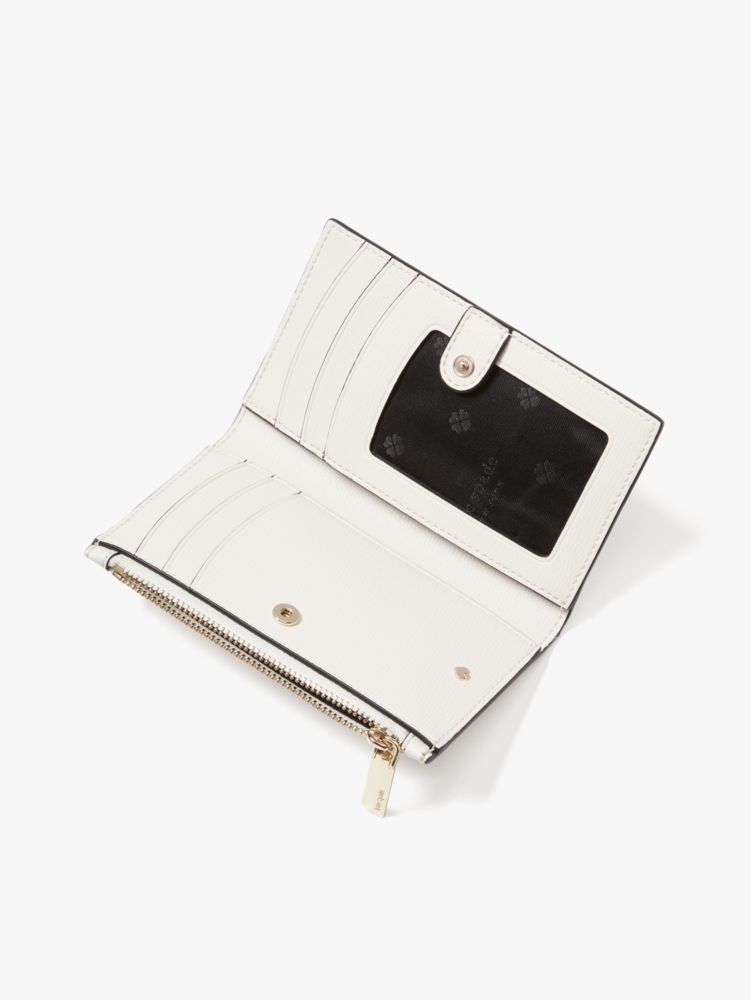 our spencer small slim bifold wallet gets a playful spin in faux leather printed with our classic cabana dots. we kept it durable against drops and scratches, so it'll keep its luxe look.