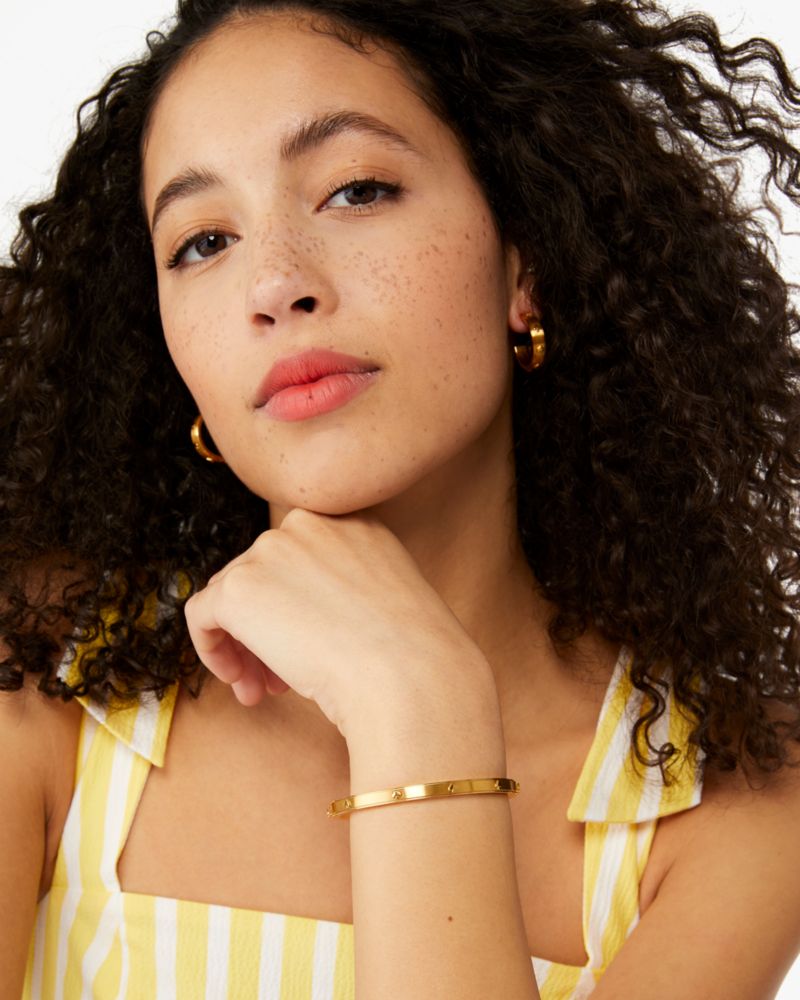 Kate Spade,Spot The Spade Metal 5mm Hinge Bangle,Single Strand,Metal Material,Logo,Gold Metal,Casual,
