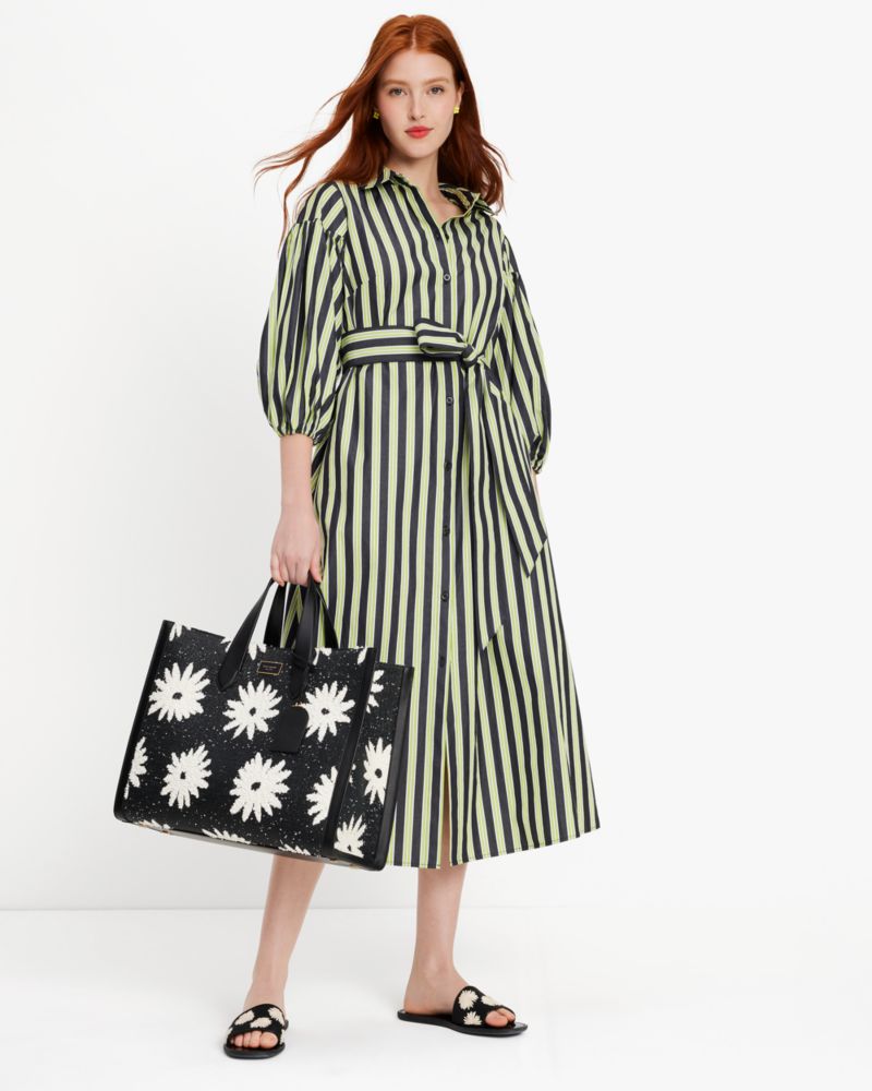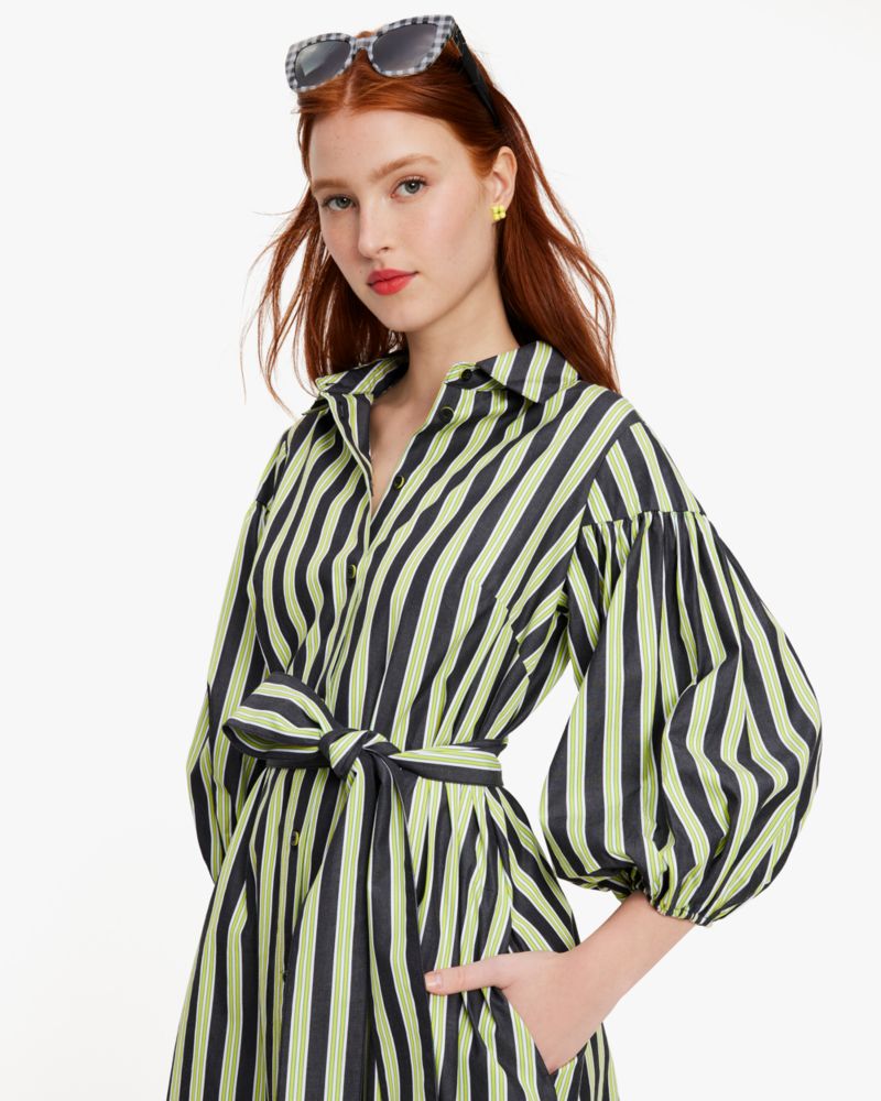 Kate Spade,Springtime Stripe Shirtdress,Cotton,Shirt Dress,A-Line,Tie Belt,Day Party,Multi Color