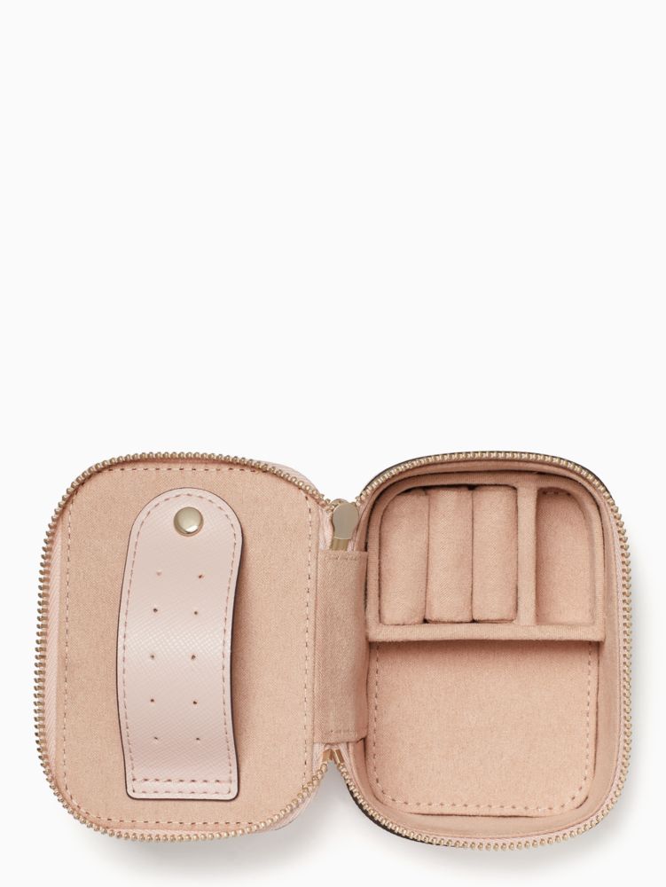 Your fabulous jewelry deserves to be carried in a fabulous holder. Did we mention the space for organizing your necklaces & earrings? Bon voyage.