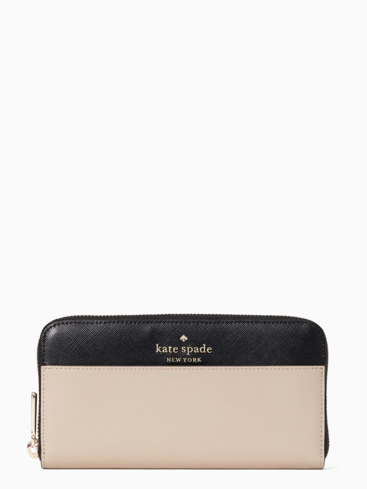 Kate Spade,Staci Large Continental Wallet,Leather,Continental,Color Block,Metal,Logo,Gusset,Casual,